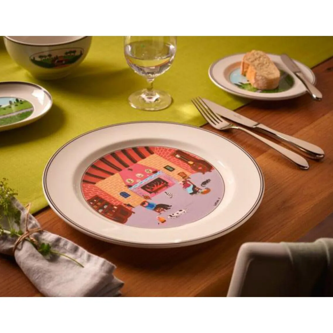 Mit dem Speiseteller Design Naif Kamin von wird es Zeit für ein gemütliches Dinner zu zweit. Das liebevoll ausgearbeitete Dekor lädt mit seinem gemütlichen Kaminzimmer zum entspannten Verweilen und Genießen ein.
