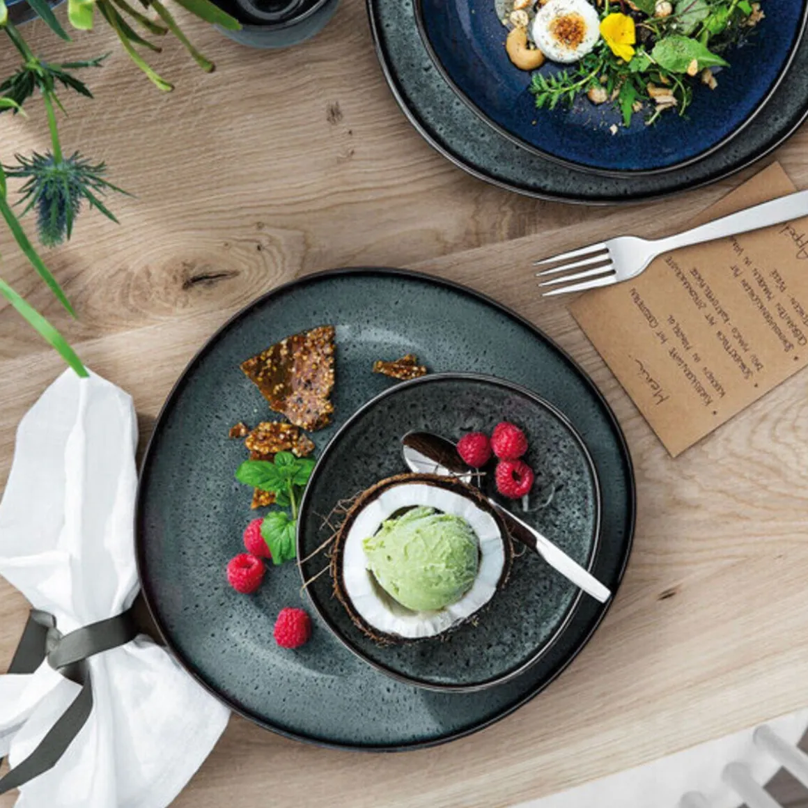 Die einzigartige Geschirrkollektion Lave gris aus Steingut versprüht den Charme des angesagten Pottery-Stils. Glanzvolle Oberflächen, organische Formen und spannende Farbspiele erinnern beim Anblick der Teller, Schalen und Becher an wirsches Lavagestein. Für den speziellen Look des Speisetellers Lave gris hat eine Glasur entwickelt, die immer wieder variierende Farbnuancen hervorbringt. Dadurch wird jedes Teil zum Einzelstück und der gedeckte Tisch ein stimmungsvoller Blickfang.