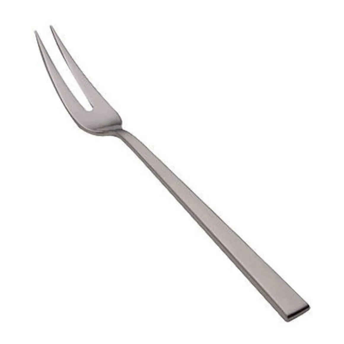 Die Fleischgabel aus der Serie Cantone von ist von einem dezenten Look geprägt, der sich in einem kantigen Griff mit runden Ecken zeigt. Das mattierte Oberflächenfinish verstärkt den sanften Auftritt des Bestecks und stellt neben der Ästhetik die Funktionalität der Gabel in den Vordergrund.