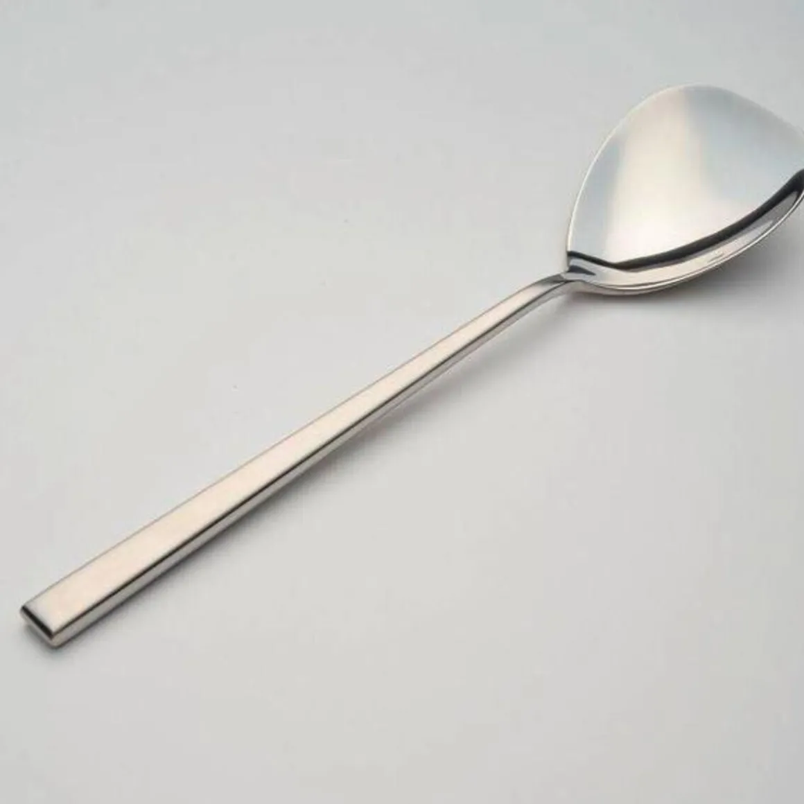 Mit dem Salatbesteck aus der Serie Cantone von lässt sich Salat besonders gut greifen und auf dem Teller drapieren. Die kantigen Griffe mit ihren abgerundeten Ecken liegen gut in den Händen, während die breiten Laffen den nötigen Halt gewährleisten.