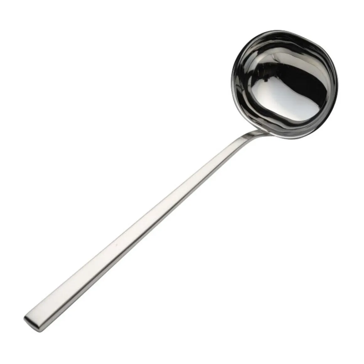 Mit dem Suppenschöpfer Cantone von lassen sich Ihre Eintöpfe und dampfende Suppen im Stil der Art-déco schöpfen. Der Griff mit den abgerundeten Kanten lässt sich gut fassen, während die Laffe leicht eintaucht und eine tellergroße Menge fassen kann.