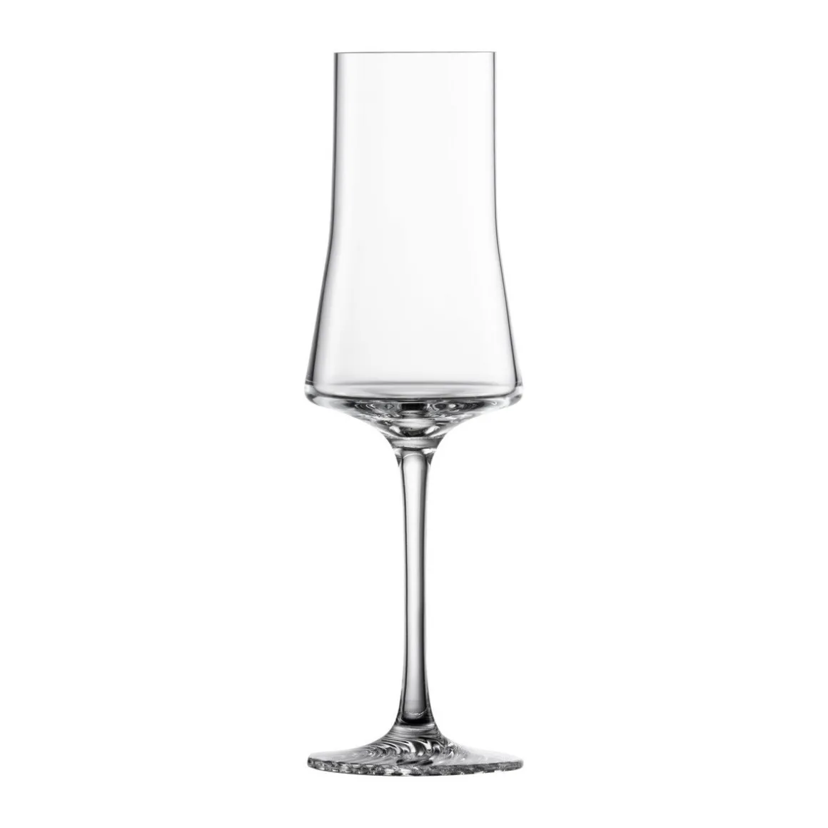 Das geradlinige Grappaglas Echo von eignet sich für aromaintensiven Grappa, Wodka oder klare Obstbrände. Der Boden ist von feinen Wellen geprägt, die das Getränk von unten her mit Lichtreflektionen umgarnen und in Szene setzen.