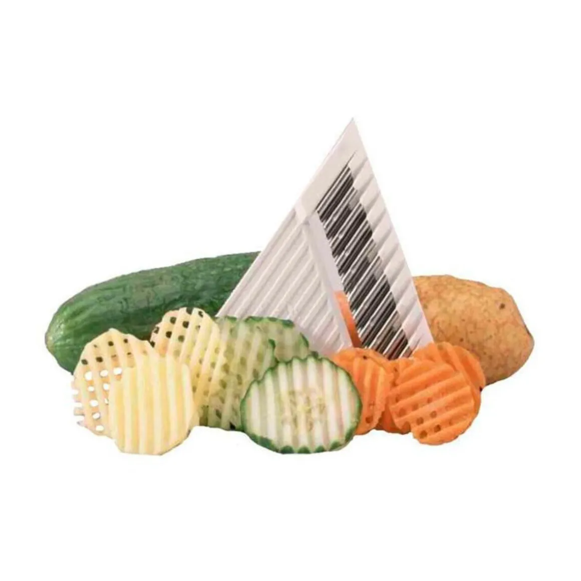 Mit dem Buntschneide-Einsatz von zaubern Sie mit dem Universal-Gemüsehobel des Herstellers tolle Waffel- und Wellenmuster in Ihr Gemüse.