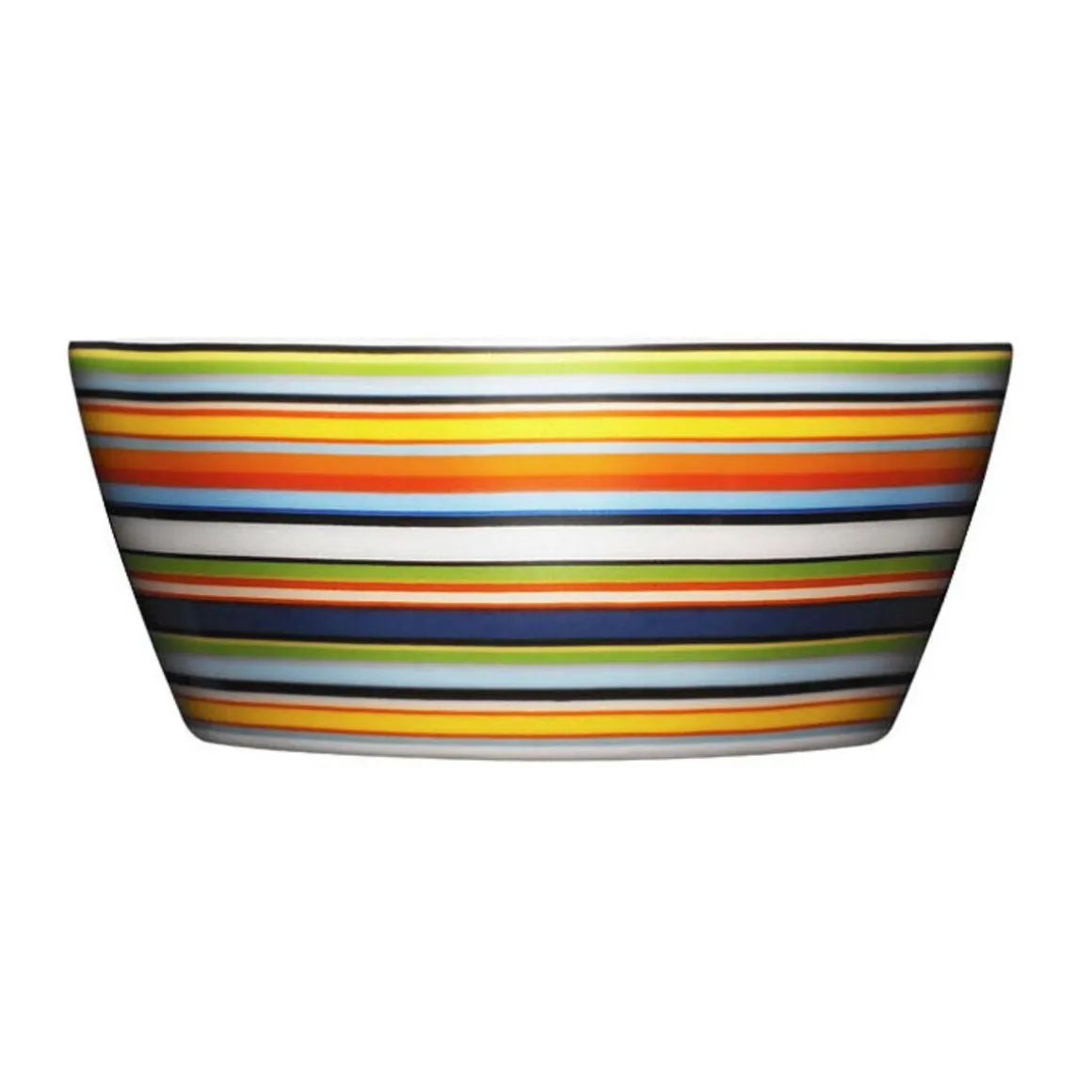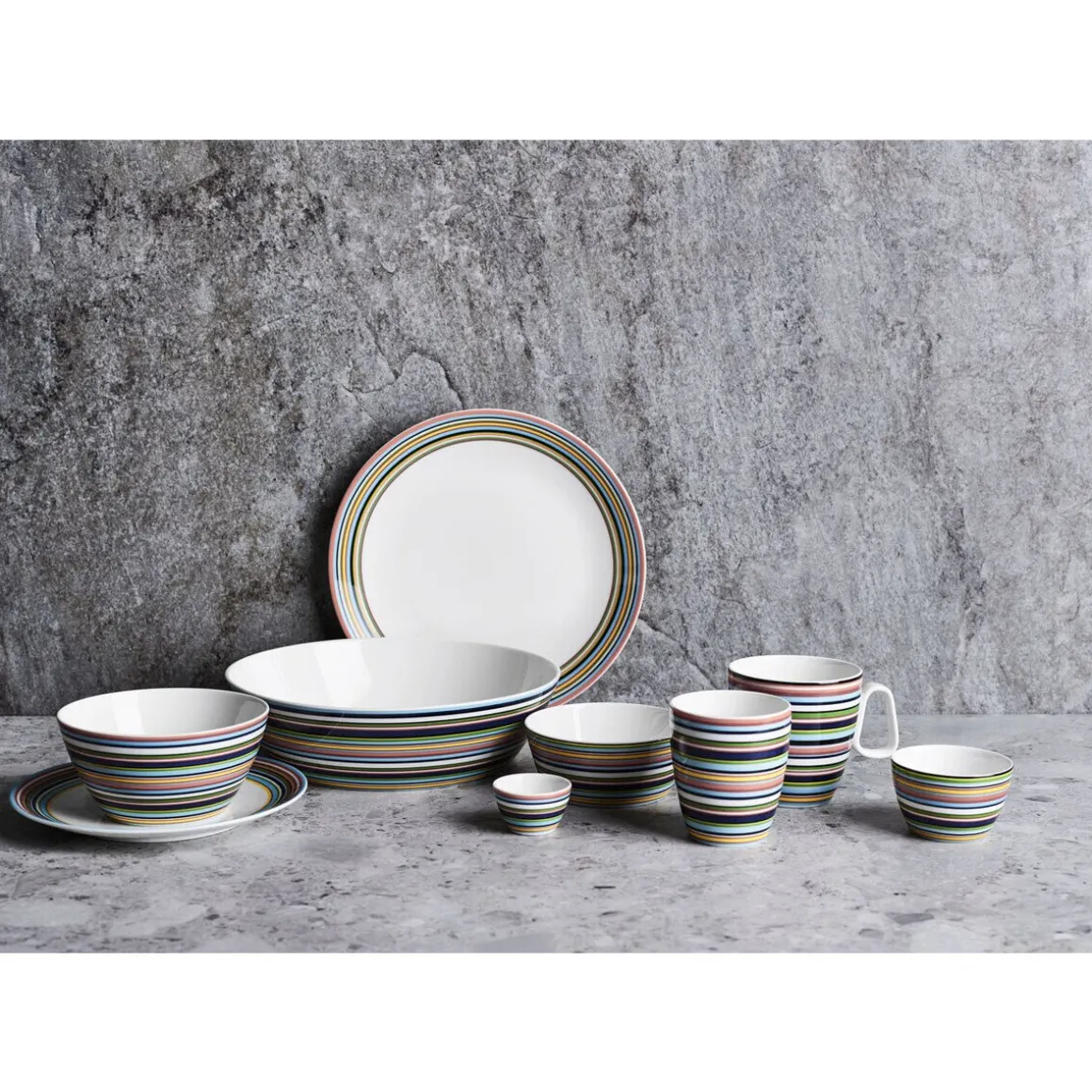 Die originell gestaltete Schale Origo verdeutlicht die Kreativität des finnischen Herstellers . Das leuchtende Orange fällt sofort auf. Es wurde mit anderen Farben zu einem raffinierten Ringelmuster kombiniert. Aus robustem Porzellan hergestellt, ist die runde Schüssel aus der Serie Origo Orange spülmaschinen- und mikrowellenfest und lässt sich in den Backofen stellen. Sie hat die richtige Größe beispielsweise für Salat, Pasta oder Müsli.