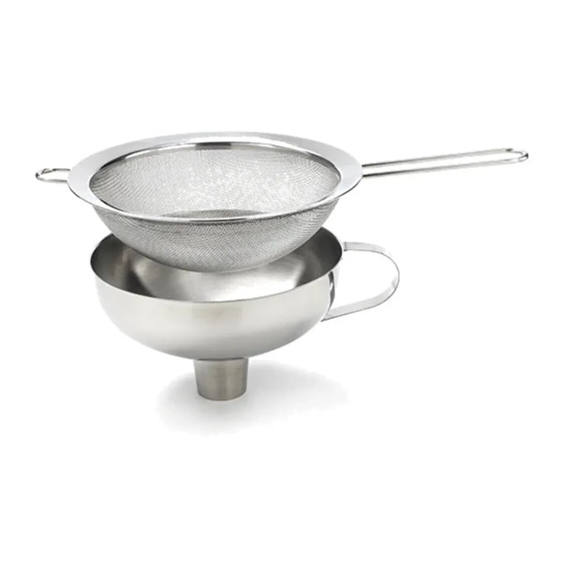 - Trichter und Sieb aus hochwertigem 18/10 Edelstahl