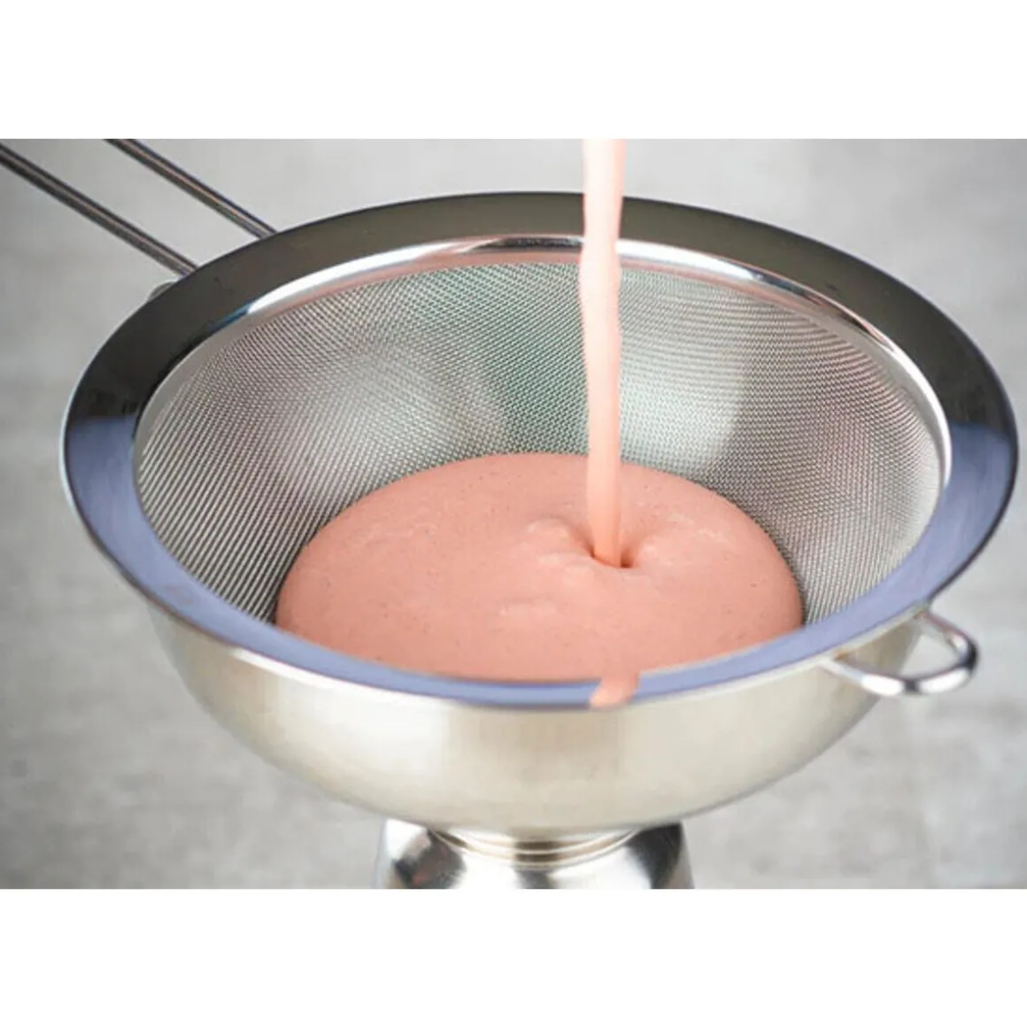 Mit dem praktischen Trichter und Sieb von lassen sich Ihre Toppings und Cremes hervorragend passieren. Das feinmaschige Sieb wird dazu einfach auf den Trichter aufgesetzt, der wiederum passgenau zum Gourmet Whip oder zum Creative Whip passt. Fasern bleiben, wie gewünscht, im Sieb zurück, während die Masse in den Behälter des Whips tropft.