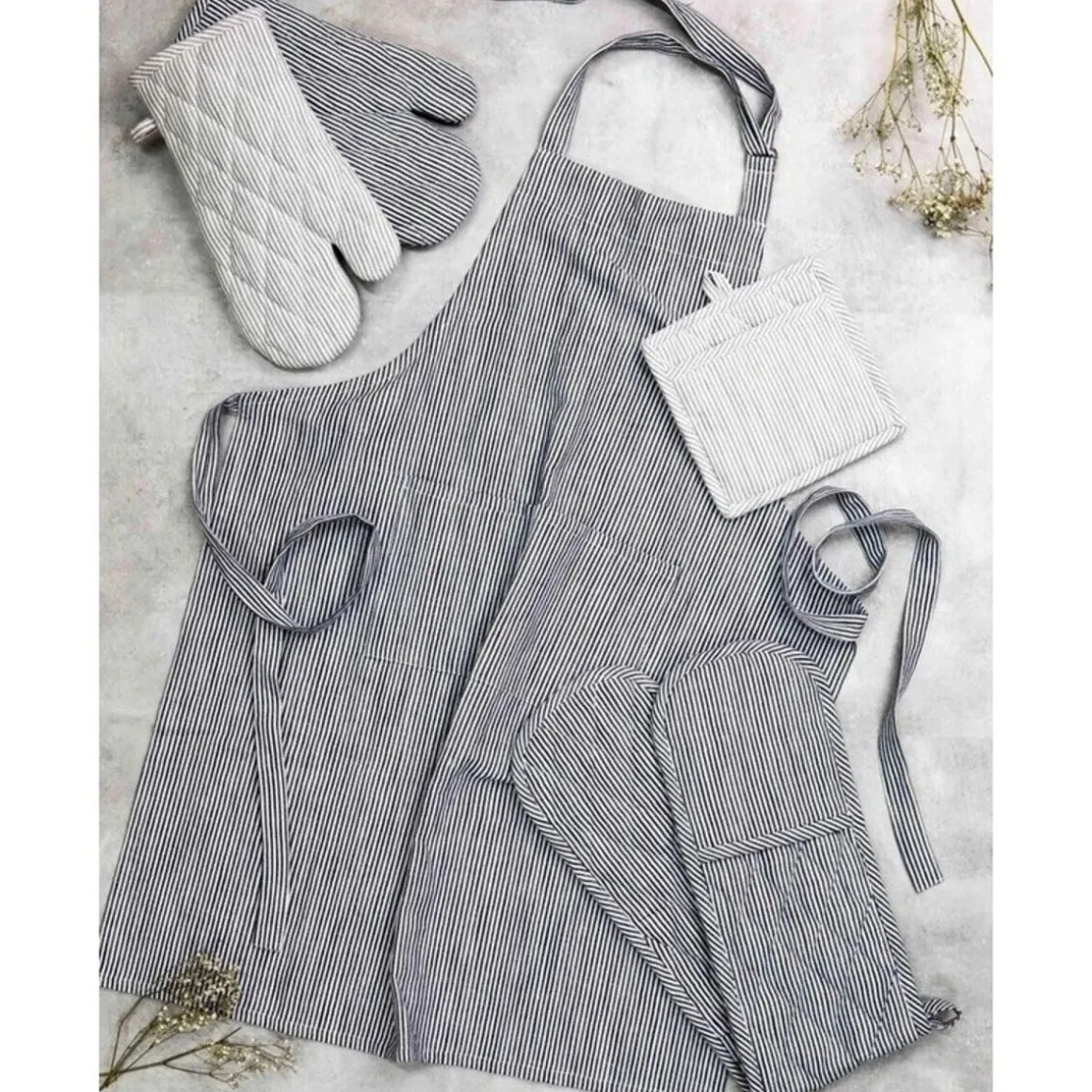 Mit der Schürze Lina Stripe von wird das Kochen und Backen zu einem gut aussehenden und geschützten Fest. Die Schürze schmiegt sich um Ihre Silhouette und hüllt Sie in ein zeitloses Streifenmuster, das Spritzer von Ihrer Kleidung fernhält.