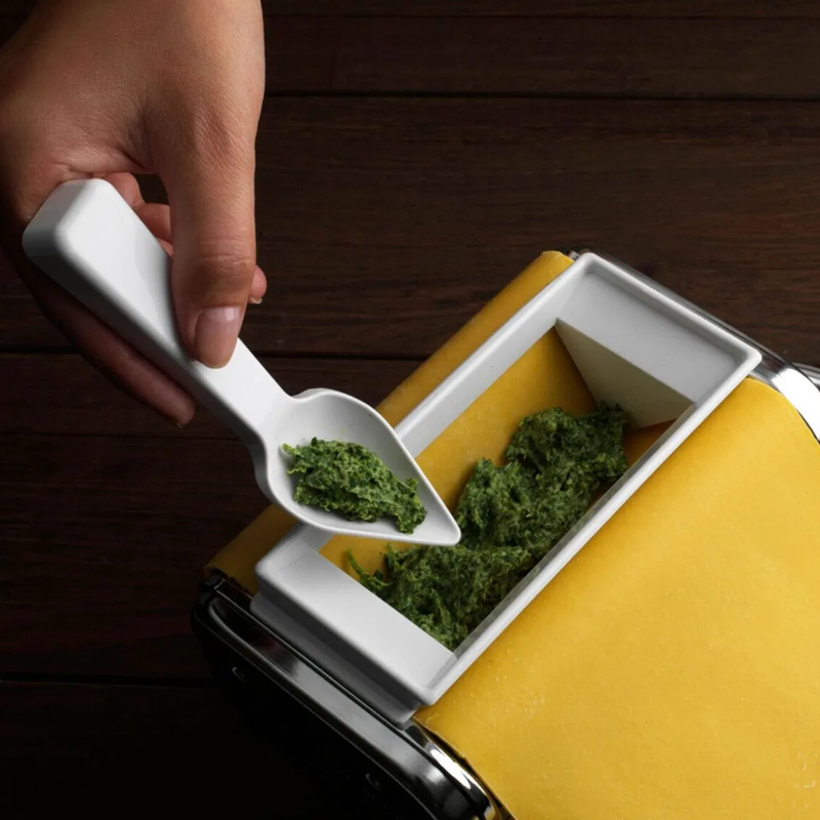 - inkl. Zubehör für Spaghetti (12 mm), Pappardelle (10 mm) und Ravioli (45×45 mm)