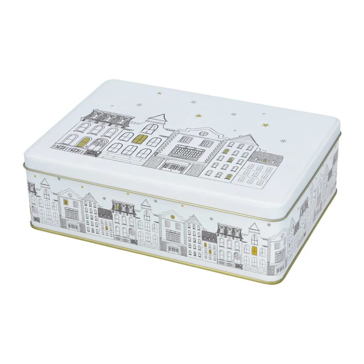 Die Gebäckdose XL Minimalistic Decor von kommt mit einem puristischen Dekor daher, das durch feine Linien und zarte Goldnuancen geprägt ist. Es zeigt die Silhouette einer Stadt, die durch die filigrane Gestaltung einen besinnlichen Ausdruck erhält. Bewahren Sie Ihre Lieblingsplätzchen in dieser schönen Dose auf und sorgen Sie für weihnachtlichen Knuspergenuss.