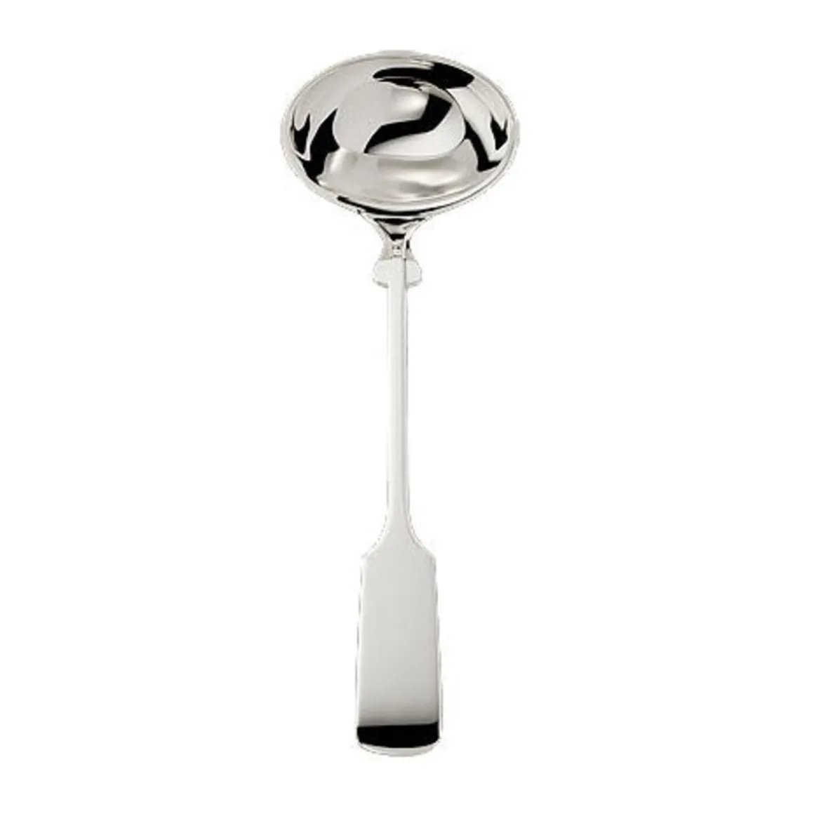Der Suppenschöpfer Alt Spaten von Robbe & Berking zeigt sich in einem formschönen Design und zeitloser Eleganz. Er ist mit 925er Sterlingsilber überzogen und auf Hochglanz poliert. Der Schöpfer hat eine Länge von 27,5 cm und eine Breite von 9,4 cm. Dadurch eignet er sich ideal für größere Suppenterrinen und Schüsseln mit deftigen Eintöpfen. Durch den am Ende breiten Griff liegt der Suppenschöpfer beim Servieren gut in der Hand. Nach dem Gebrauch kommt er zur Reinigung in die Spülmaschine.