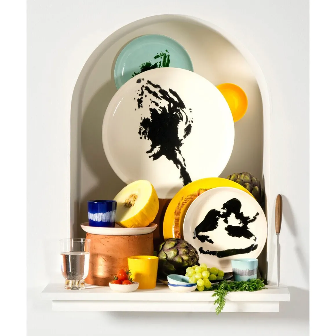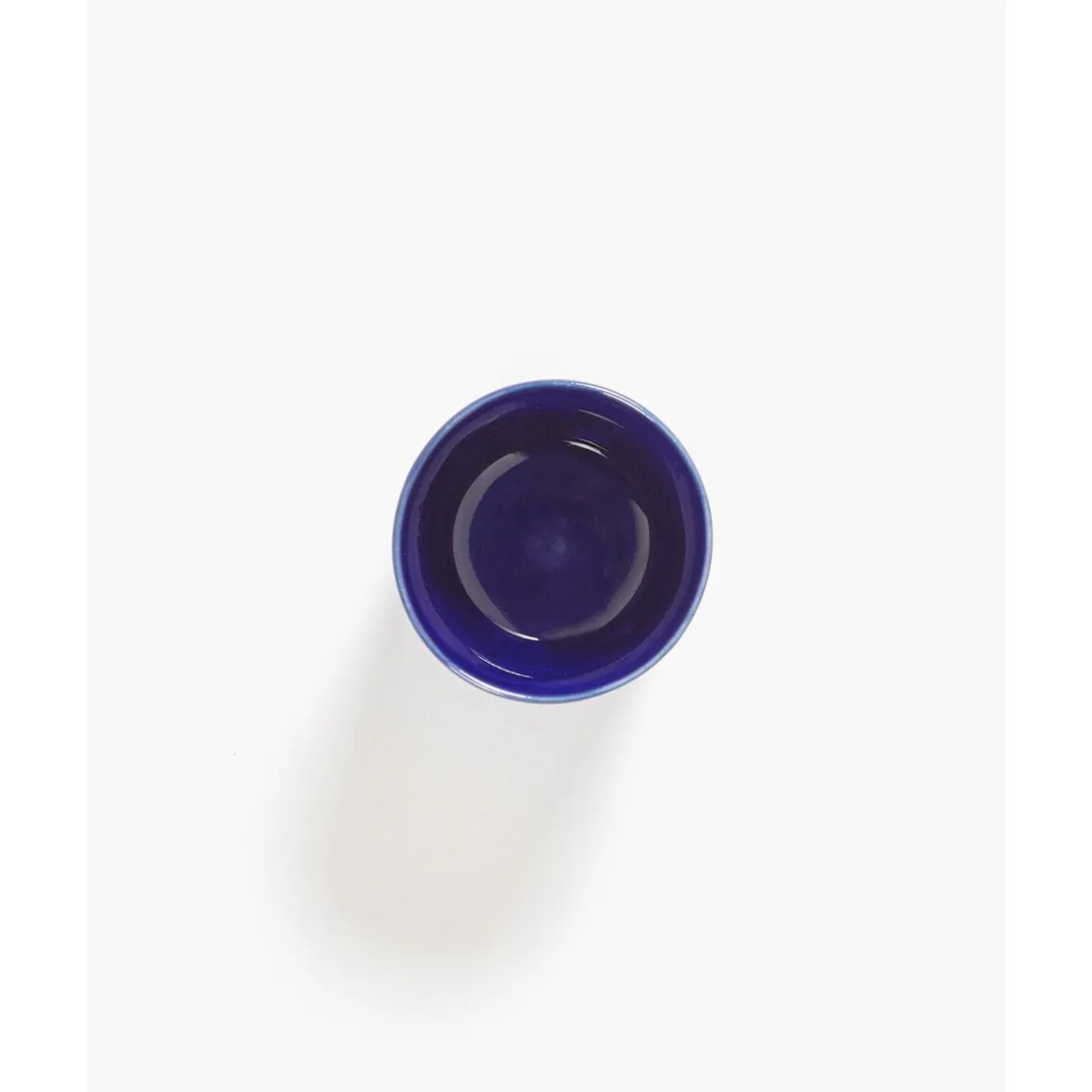 Die Espressotasse Feast von schmiegt sich angenehm in die Handfläche ein und begeistert mit ihrem minimalistischen Ausdruck, der nur von einem weißen Band aus Streifen belebt wird.