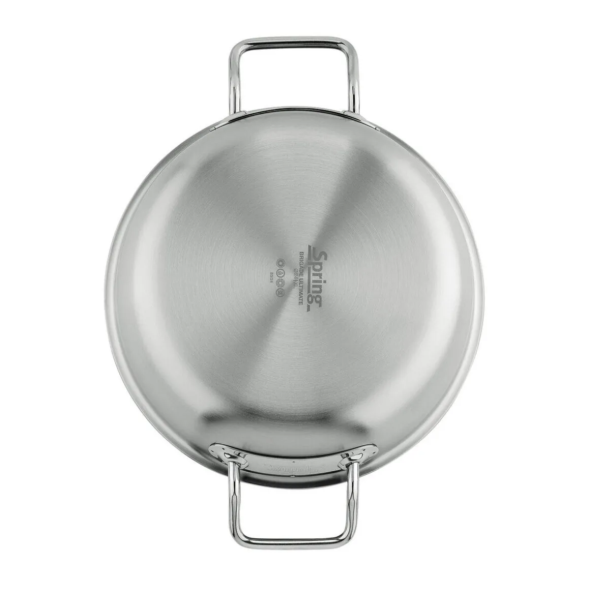 - ein dreifacher Aluminiumkern liegt zwischen zwei Schichten aus Edelstahl, wovon die äußere induktionsfähig ist