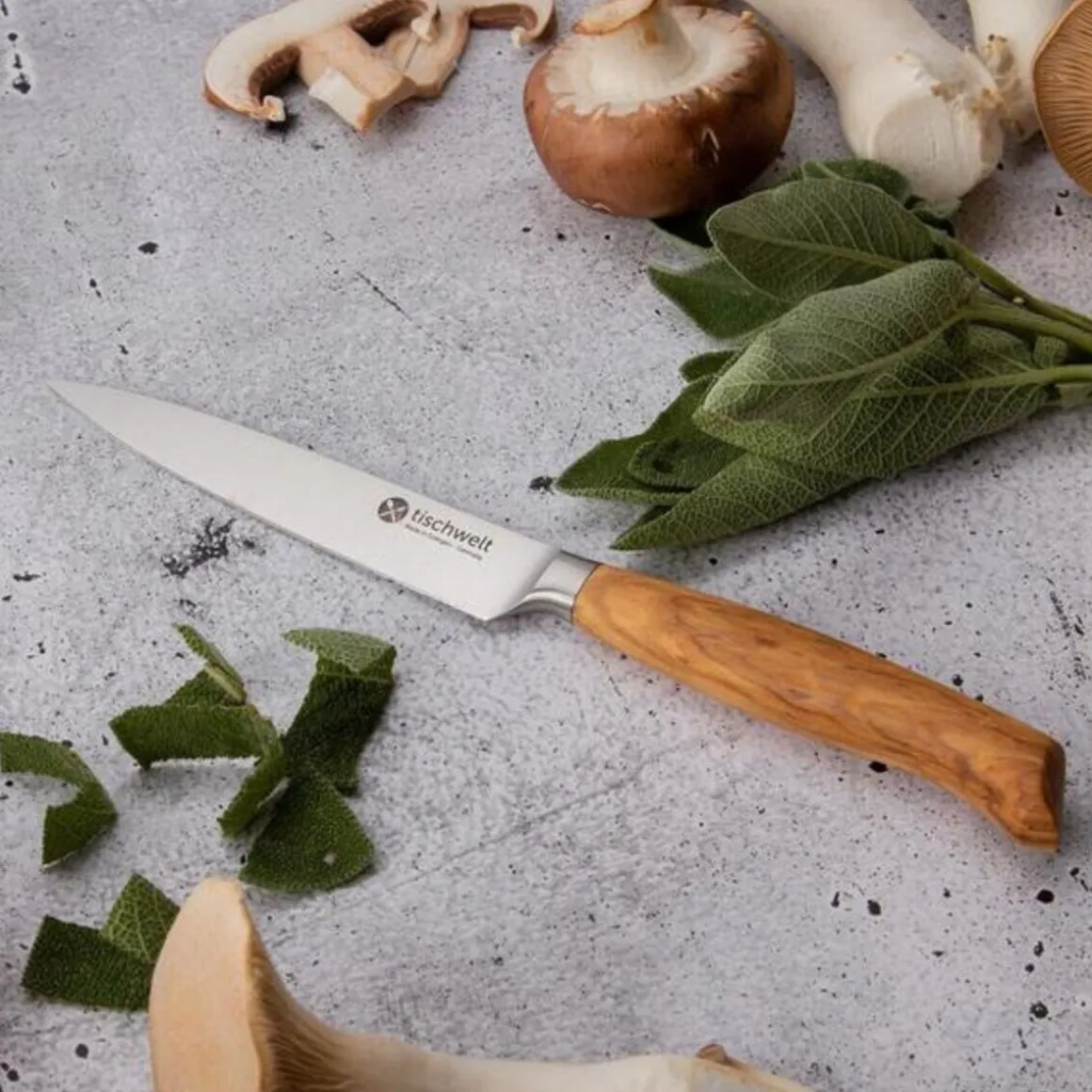 - Griff aus Olivenholz aus nachhaltiger Forstwirtschaft in Spanien